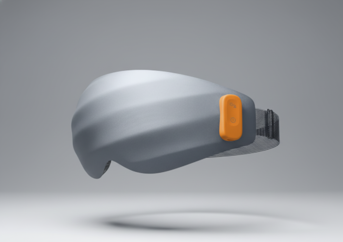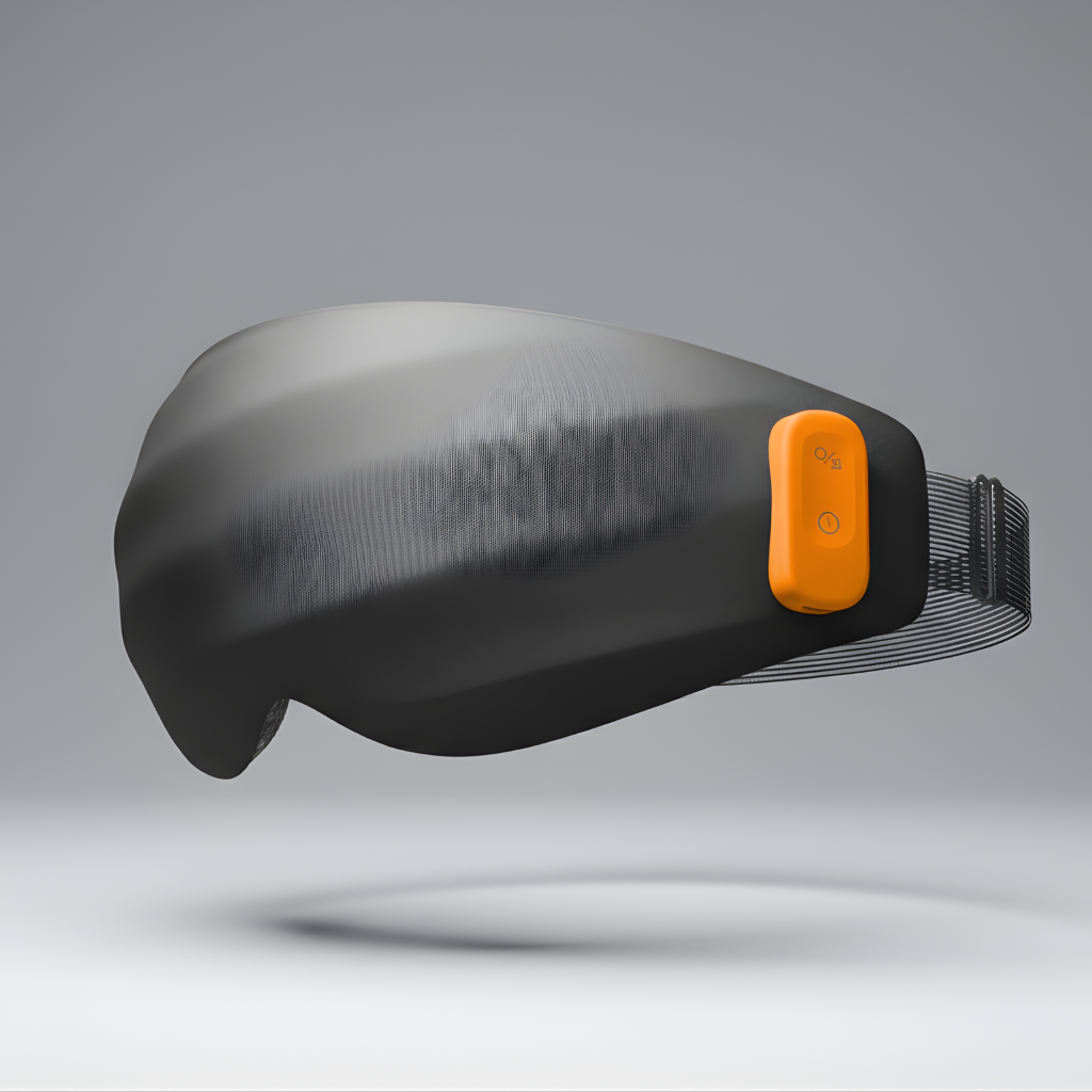 מסכת השינה בנויה בעיצוב תלת־ממדי עם איטום מלא של 360° וכנפיים באזור האף שמונעות חדירת אור לחלוטין.