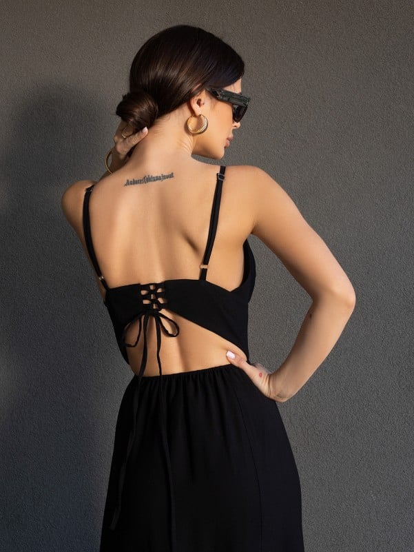Linen black suit with train