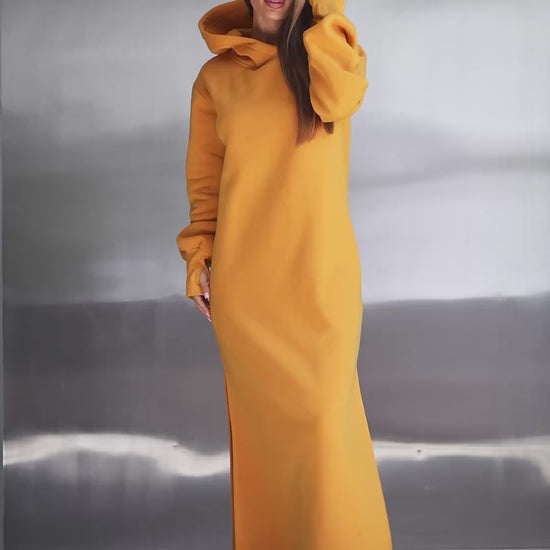 Mustard Warm Maxi Dress with Slits-sku 14899