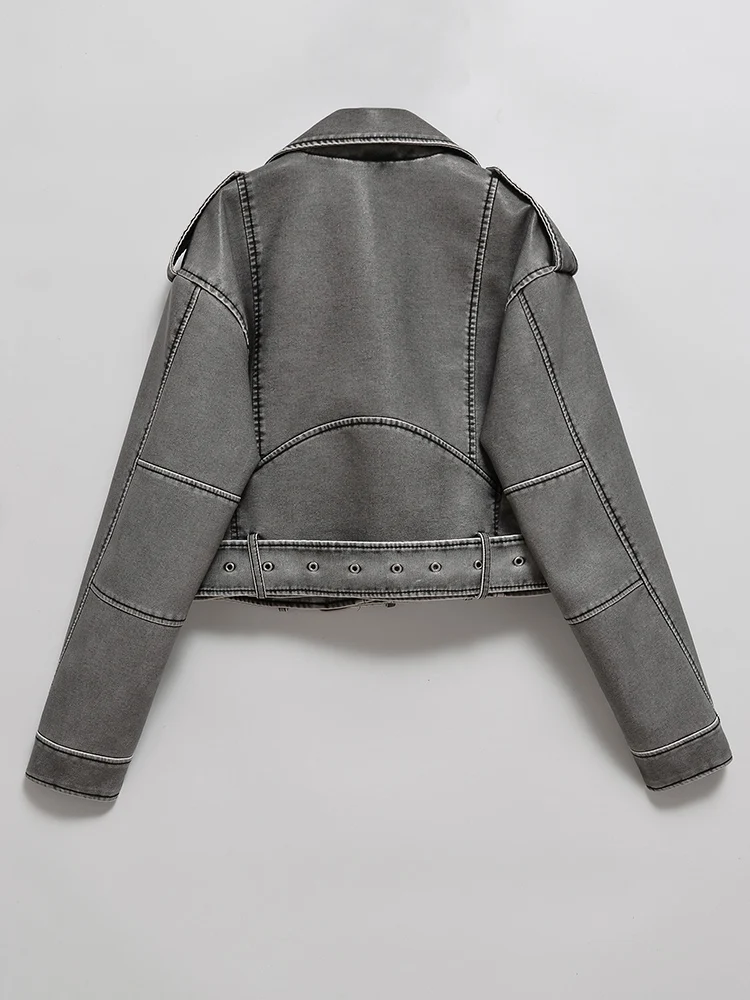 Women Vintage Loose Washed Faux Leather Short Jacket
